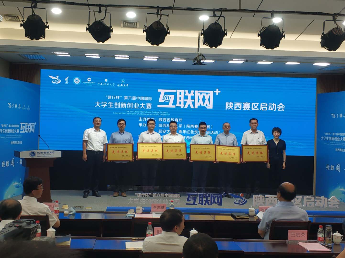 会上,陕西科技大学、延安大学、中国建设银行陕西省分行相关领导和负责同志进行了致辞。会议宣读了《关于表彰第五届中国互联网+大学生创新创业大赛组织工作先进集体和先进个人的通报》。西安科技大学在大赛组织工作中作出突出贡献被授予特别贡献奖,王贵荣代表我校领奖。同时,我校教务处、团委被授予大赛组织工作先进集体,刘琳、杨川、郭婷、周学刚四位同志被评为大赛组织工作先进个人。