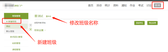 1)电脑登陆后进入课程,依次点击管理,创建班级,添加学生,学生库添加或批量导入。