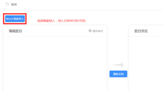 2)在智能导入页面,点击页面“Word智能导入”按钮,选择已经准备好的Word文档上传。