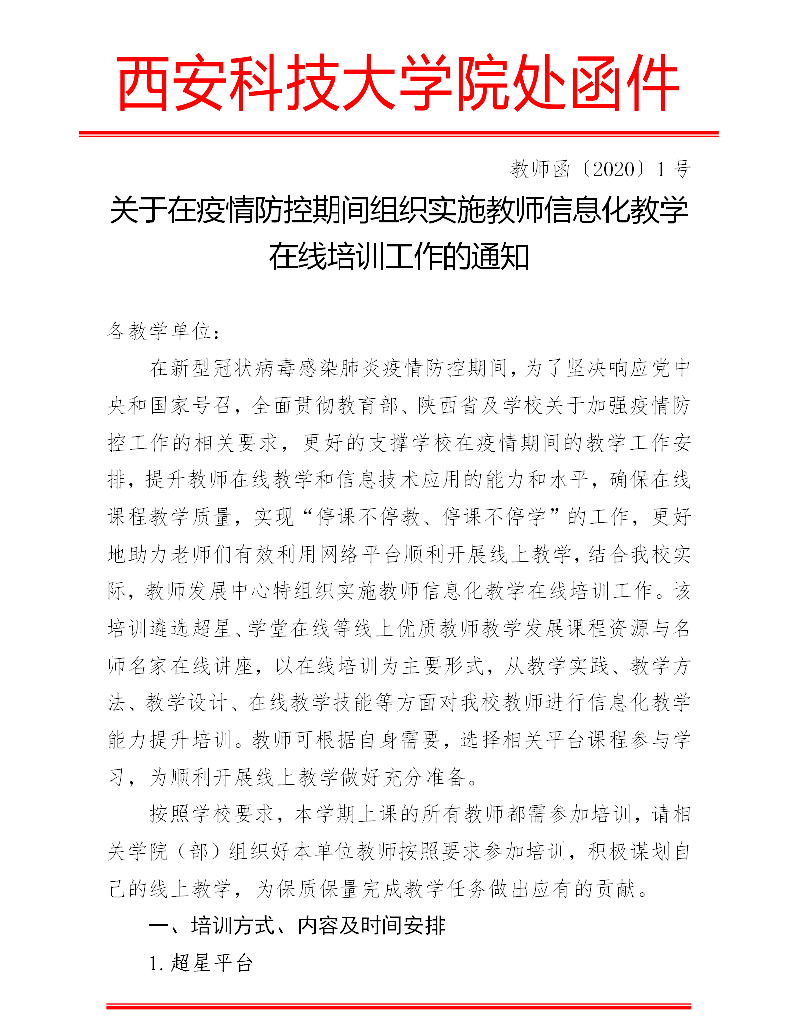 关于在疫情防控期间组织实施教师信息化教学在线培训工作的通知